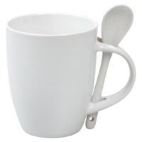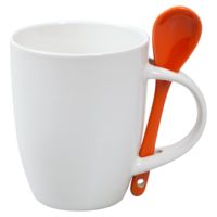 Кружка с ложкой Cheer Up, белая с оранжевой 36744