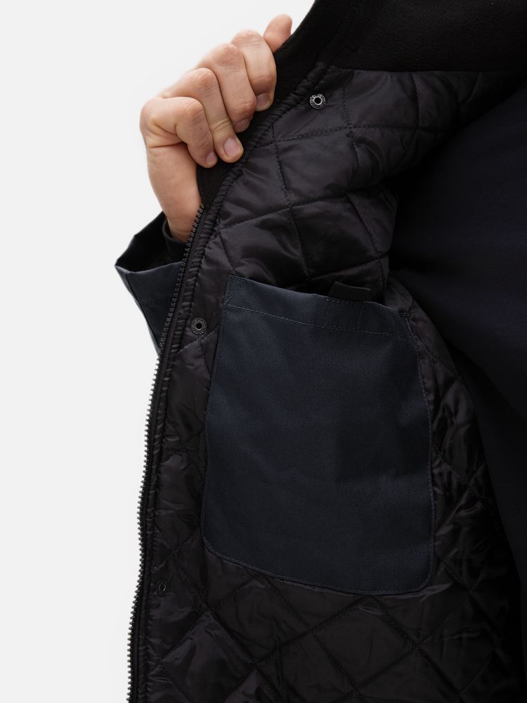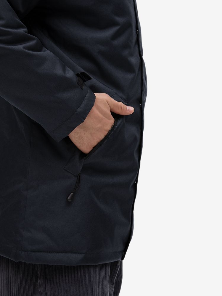- Капюшон с утягивающими шнурами, складывается и убирается в воротник