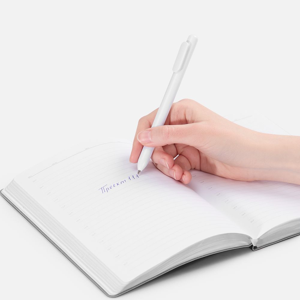 Ручка из глянцевого пластика с белым клипом.