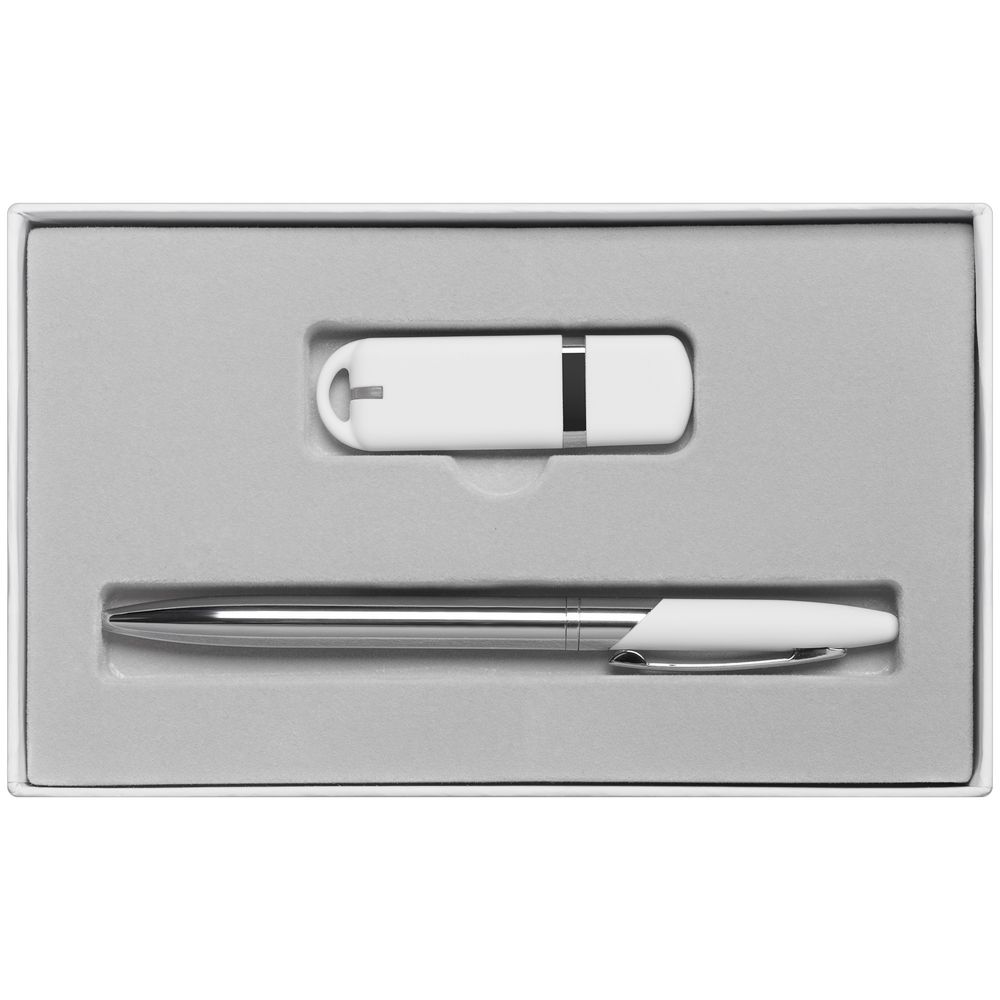 флешка - пластик, покрытие софт-тач; ручка - металл, покрытие софт-тач; переплетный картон