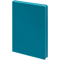 Ежедневник с твердой обложкой и тонированным обрезом, выполнен из материала Soft Touch, зеленый FF, дополнен ляссе в цвет обложки.
