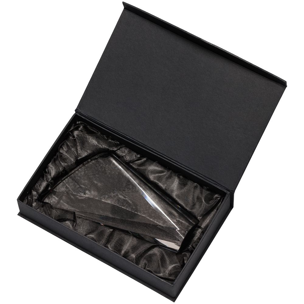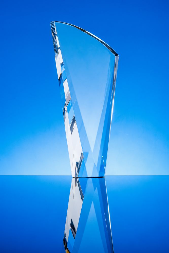 Стела изготовлена из стекла К9, в основе которого лежит оптическое боросиликатное стекло. Эту марку стекла отличает низкий процент посторонних включений, высокий показатель преломления и высокая прозрачность — идеальные качества для изготовления наград премиального уровня.