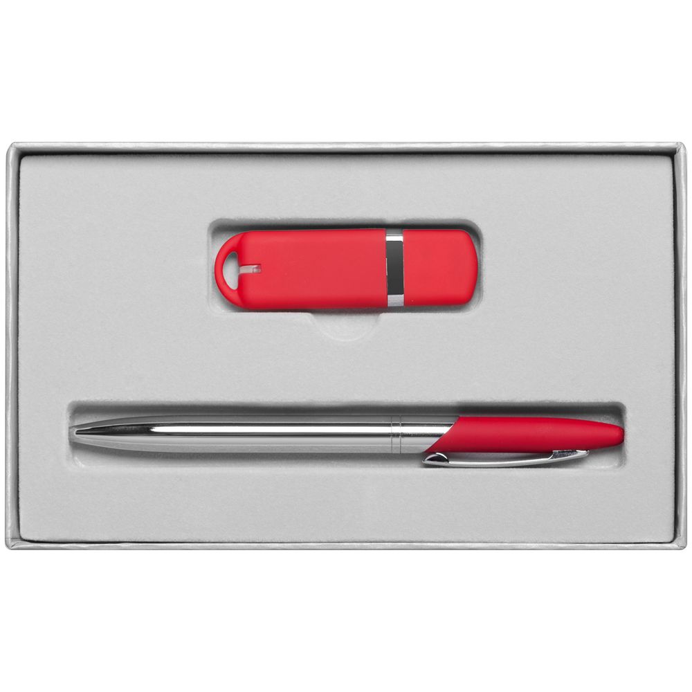 флешка - пластик, покрытие софт-тач; ручка - металл, покрытие софт-тач; переплетный картон