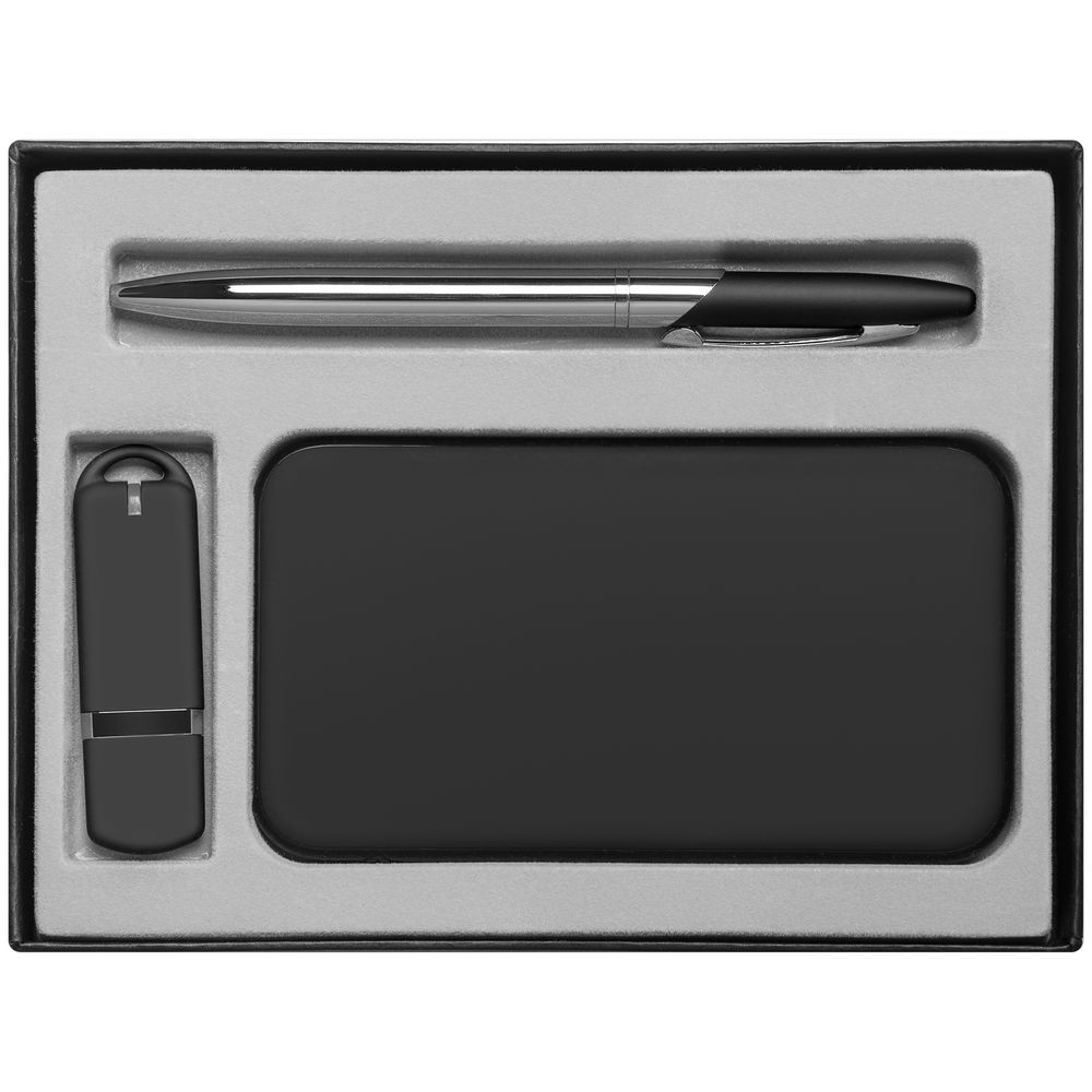 флешка и аккумулятор - пластик, покрытие софт-тач; ручка - металл, покрытие софт-тач; переплетный картон