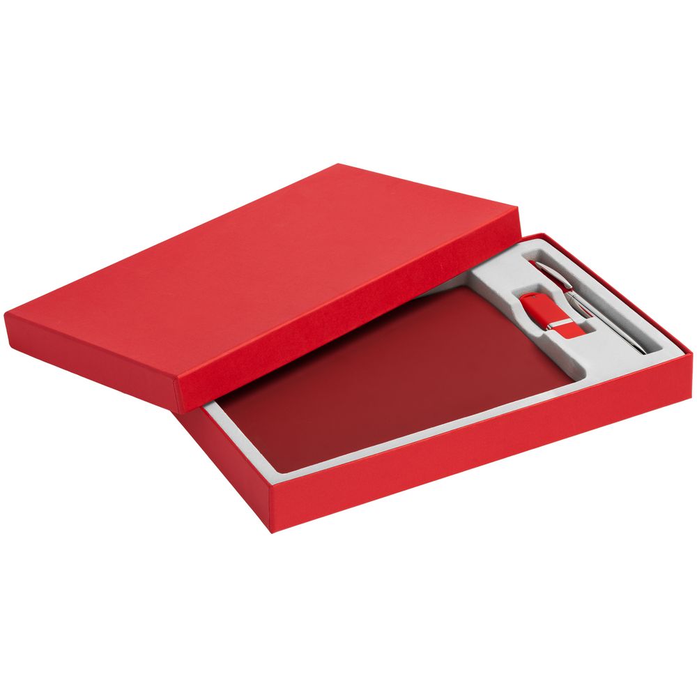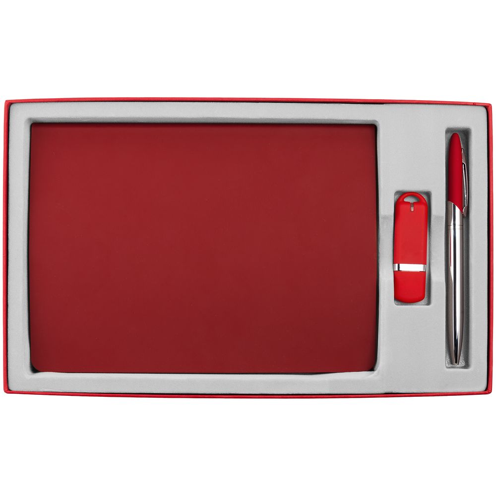 ежедневник - искусственная кожа; ручка - металл; флешка - пластик; покрытие софт-тач; коробка - переплетный картон