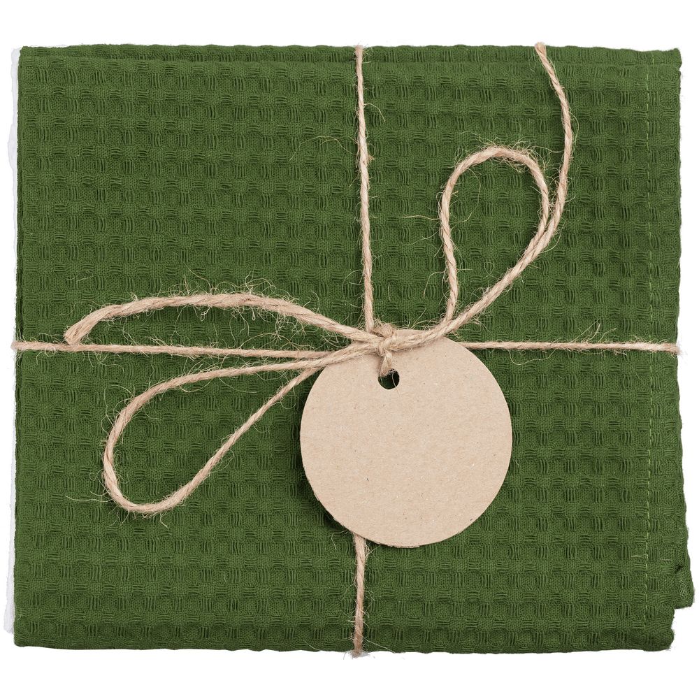 В набор входят 2 кухонных полотенца, перевязанных бечевкой с картонной биркой, на которую можно нанести логотип.