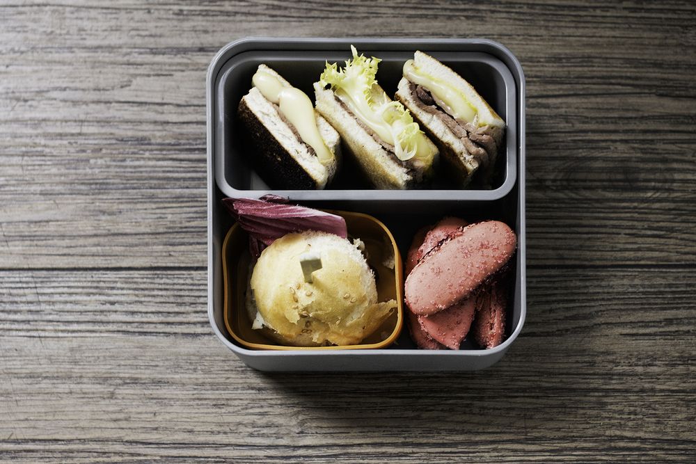 Большой квадратный контейнер, куда поместится полноценный обед. Возможно, даже на двоих.