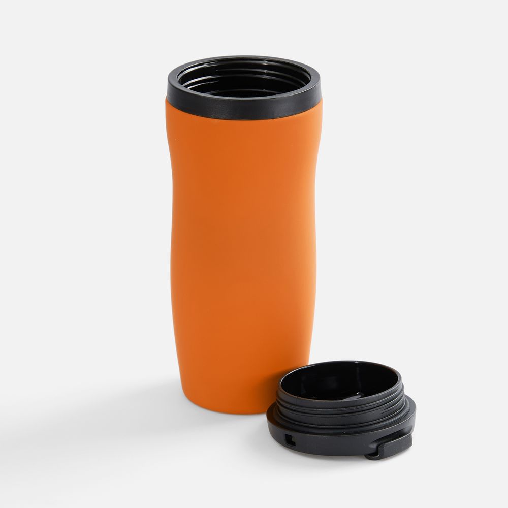Двухслойная конструкция из нержавеющей стали снаружи и пищевого пластика внутри. Герметичная завинчивающаяся крышка с откидным клапаном для питья. Покрытие софт-тач. В отверстие в крышке можно вставить шнурок для удобного ношения стакана на руке. Шнурок в комплект не входит.