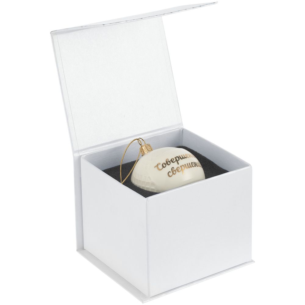 Елочный шар поставляется в подарочной коробке из белого картона с тиснением надписи на крышке.