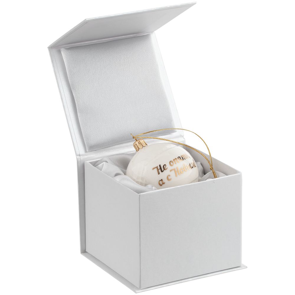 Елочный шар поставляется в подарочной коробке из белого картона с тиснением надписи на крышке.
