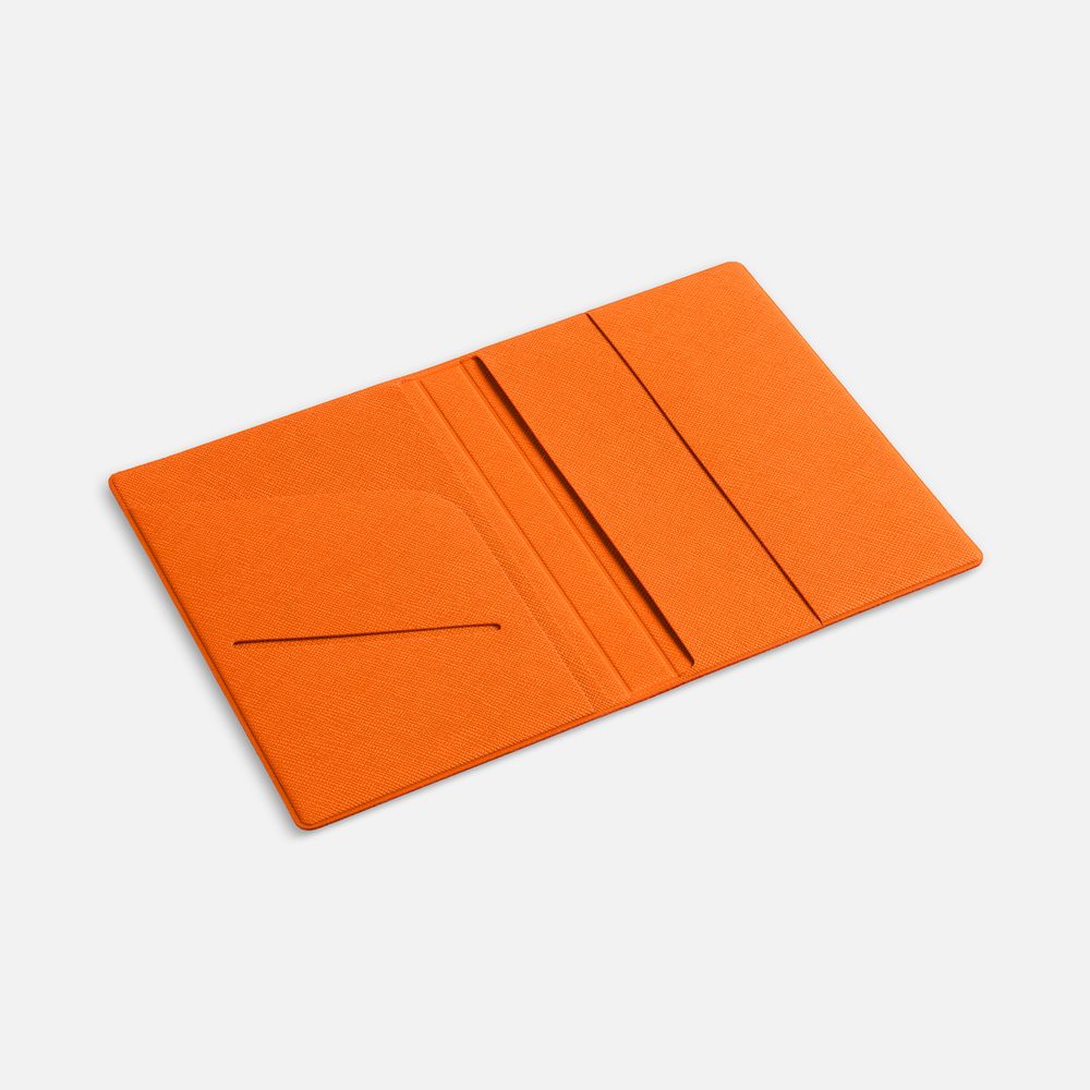 Обложка из искусственного материала, имитирующего сафьяновую кожу, с дополнительными карманами для визиток, полиса ОМС или записок.