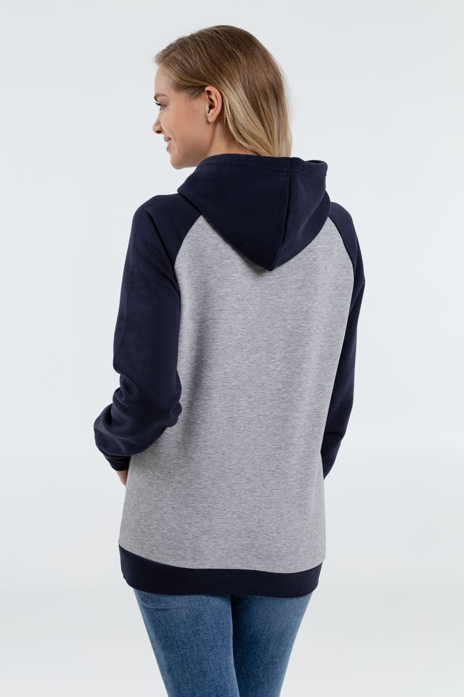 Двухцветная утепленная толстовка унисекс с рукавами реглан и карманом-кенгуру.