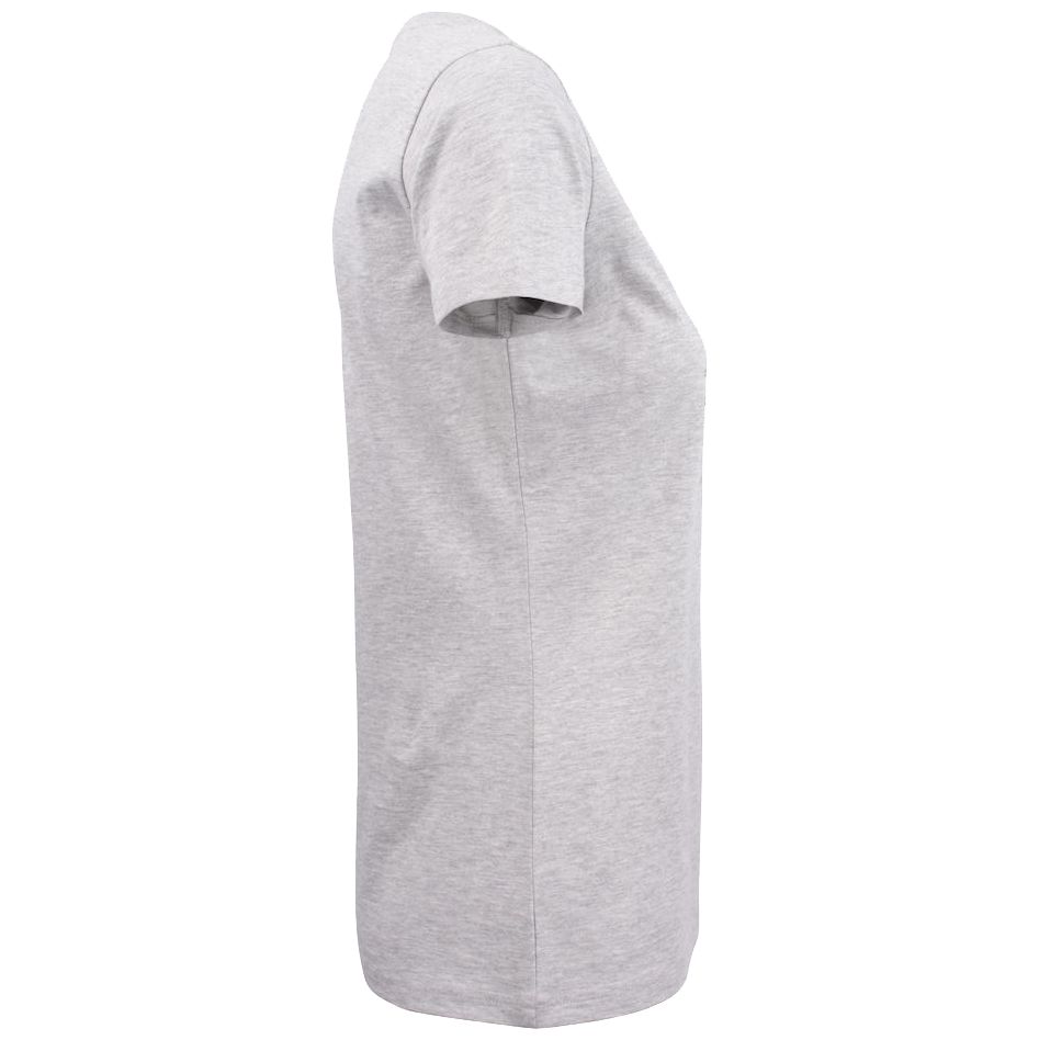 Женская футболка с круглым вырезом. Двухслойная резинка предохраняет воротник от деформации после стирки.