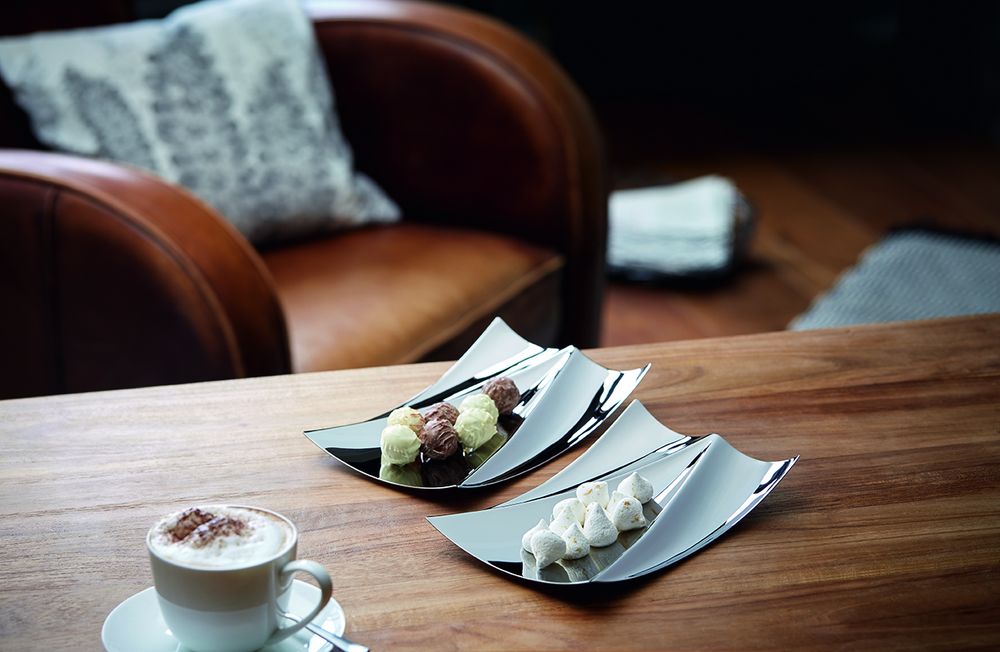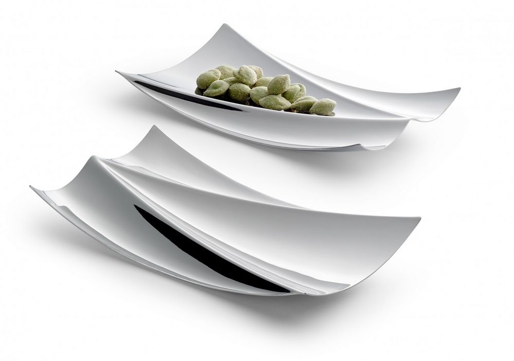 Набор блюд для закусок Elbharmonie состоит из двух изделий — одно из них зеркально повторяет другое. Это дает прекрасную возможность экспериментировать с сервировкой и организовывать пространство на свой вкус и настроение. Вы можете соединить их, поставить рядом или расположить поодаль — рисунок волн изменится по вашему желанию.