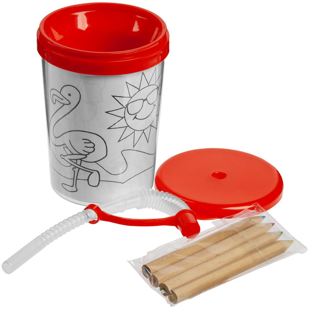В комплекте 3 раскраски и 4 цветных карандаша.