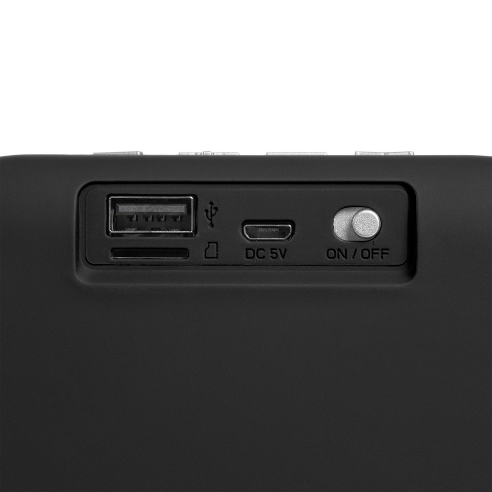 Колонка Borsetta умеет проигрывать музыку через Bluetooth, с USB-флешки, карты microSD и принимать радиоволны в FM-диапазоне. Благодаря дополнительному басовому излучателю колонка звучит объемно и сочно, а современный дизайн корпуса с покрытием софт-тач и фактурной акустической тканью не позволит ей остаться незамеченной.