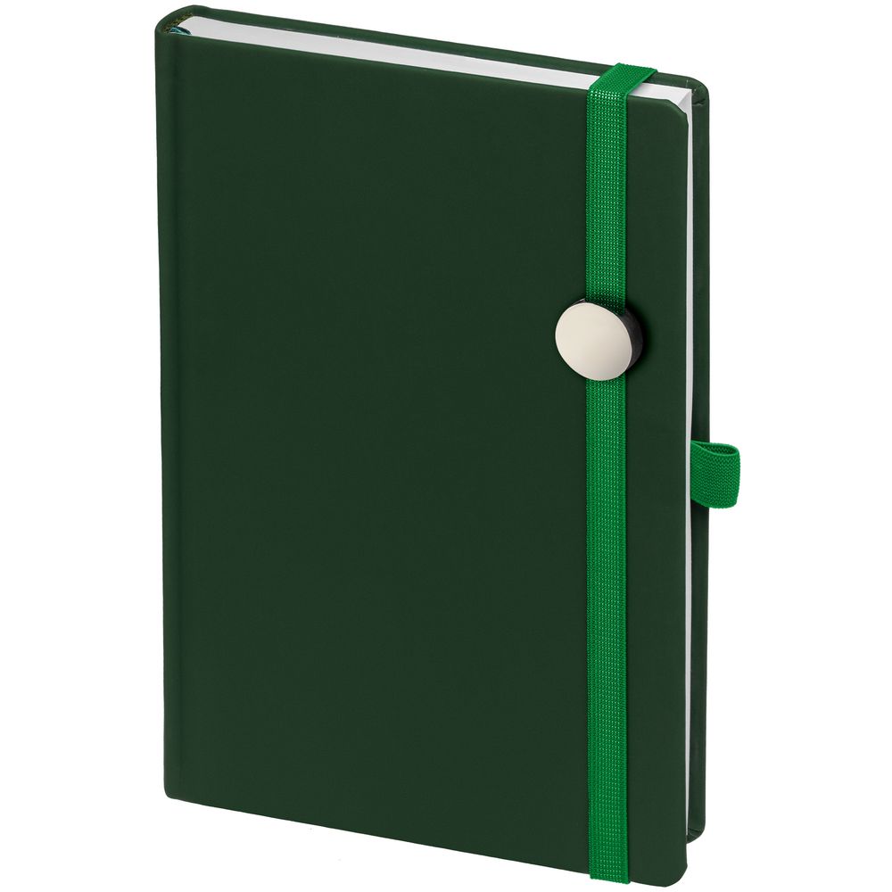 Ежедневник с твердой обложкой без поролона, выполнен из материала Soft Touch, зеленый FF, дополнен резинкой шириной 1 см, петлей-резинкой для ручки, капталом и ляссе в цвет обложки.