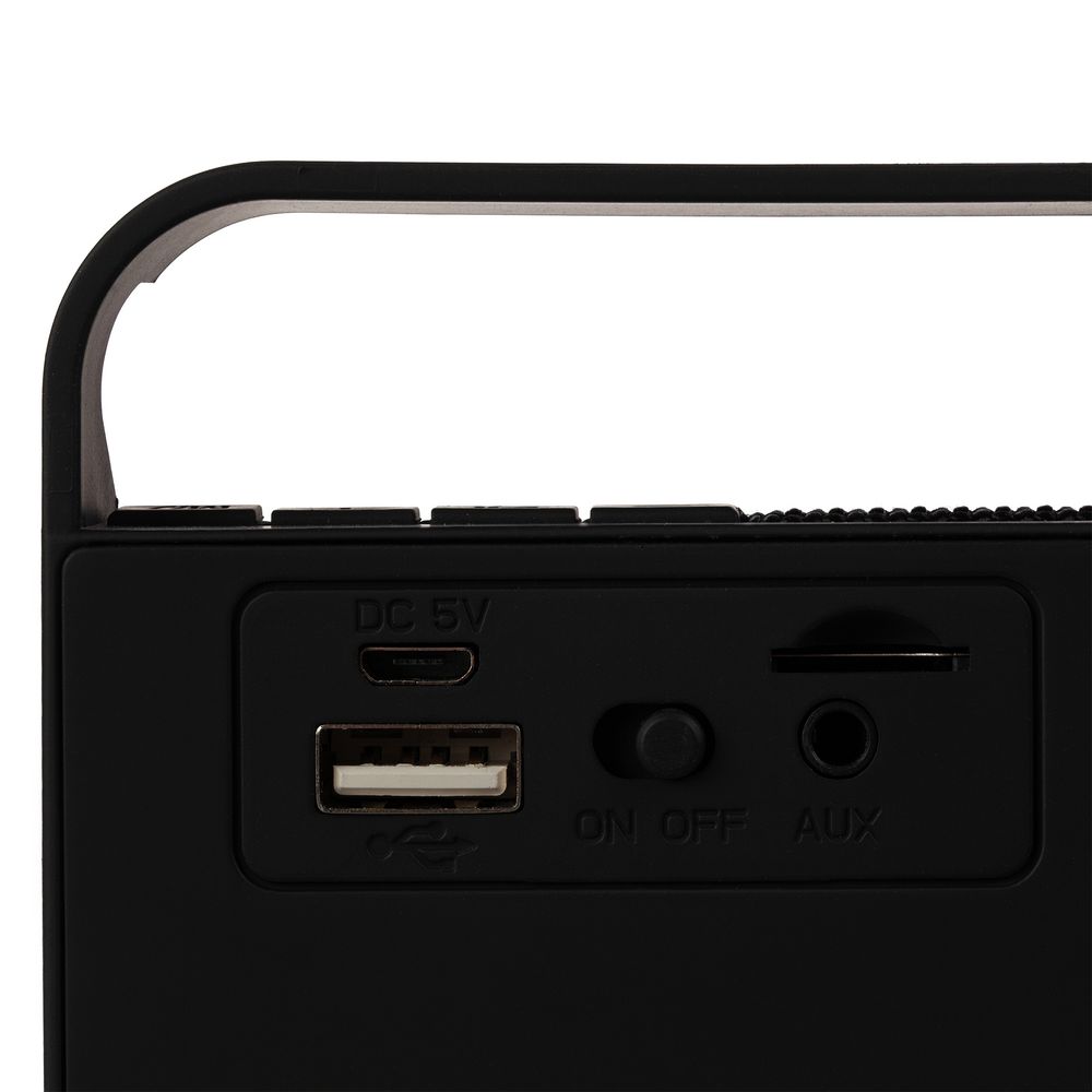 Поддерживает воспроизведение музыки или аудиокниг с флешки и карты microSD, а также принимает радиоволны в FM-диапазоне.