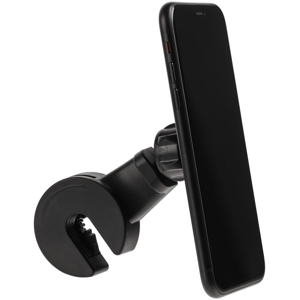 Держатель с помощью крюка крепится на подголовник.В комплекте две металлические пластины, которые можно приклеить с помощью двухстороннего скотча (в комплекте) или вложить под заднюю крышку или чехол, чтобы не портить внешний вид телефона.
