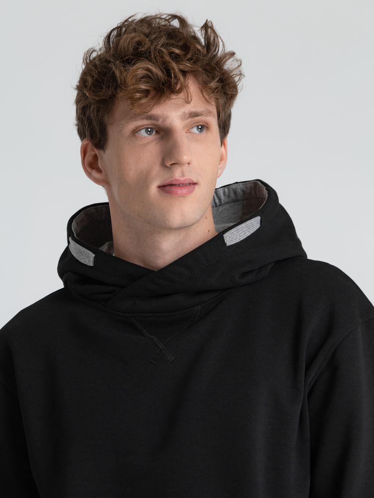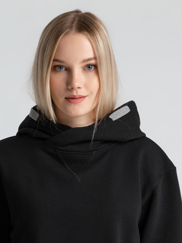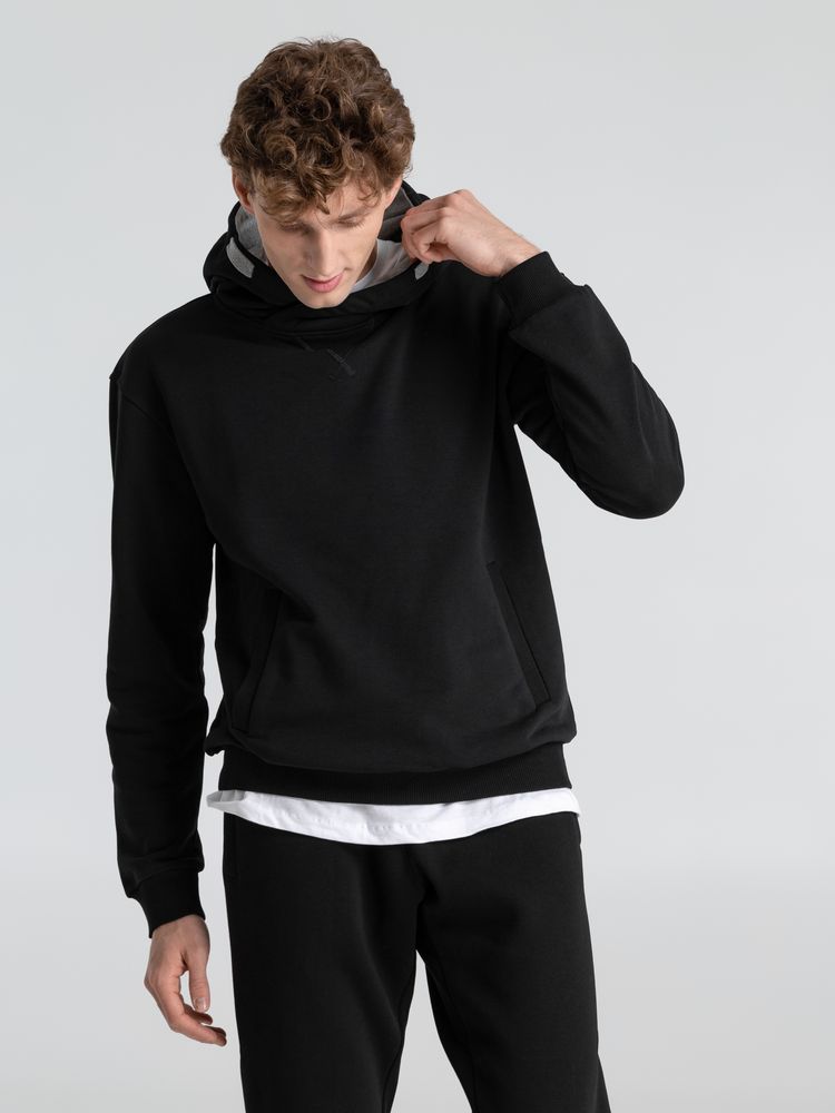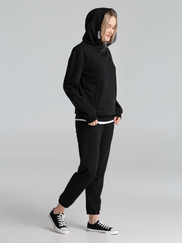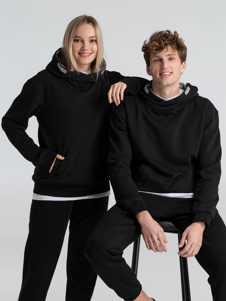 версия 1 - хлопок 80%; полиэстер 20%; версия 2 - хлопок 70%; полиэстер 30%, плотность 320 г/м², футер трехнитка; отделка капюшона - джерси, плотность 320 г/м², футер трехнитка
