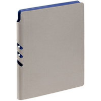 Гибкая обложка выполнена из материала Velour Melange, серый СС и Latte, бирюзовый II (внутренняя часть обложки). Внутри корешка — специальное место для крепления ручки размером до 15х0,9 см.