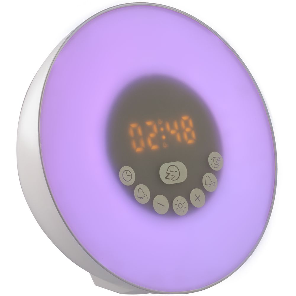 Лампа активируется за некоторое время до настроенного будильника и постепенно увеличивает яркость вплоть до момента, когда вы планируете окончательно проснуться. Эффект мягкого пробуждения можно дополнить звуками природы: шумом волн или пением птиц.