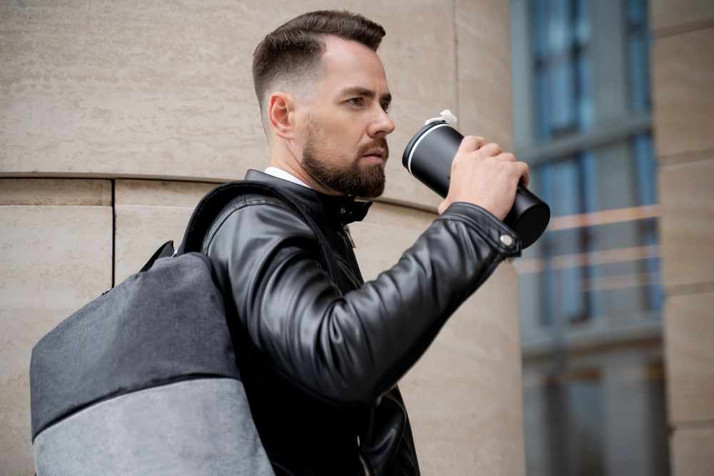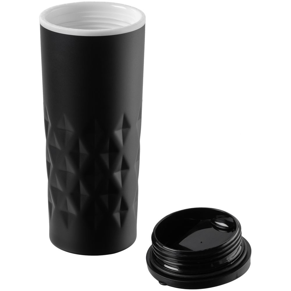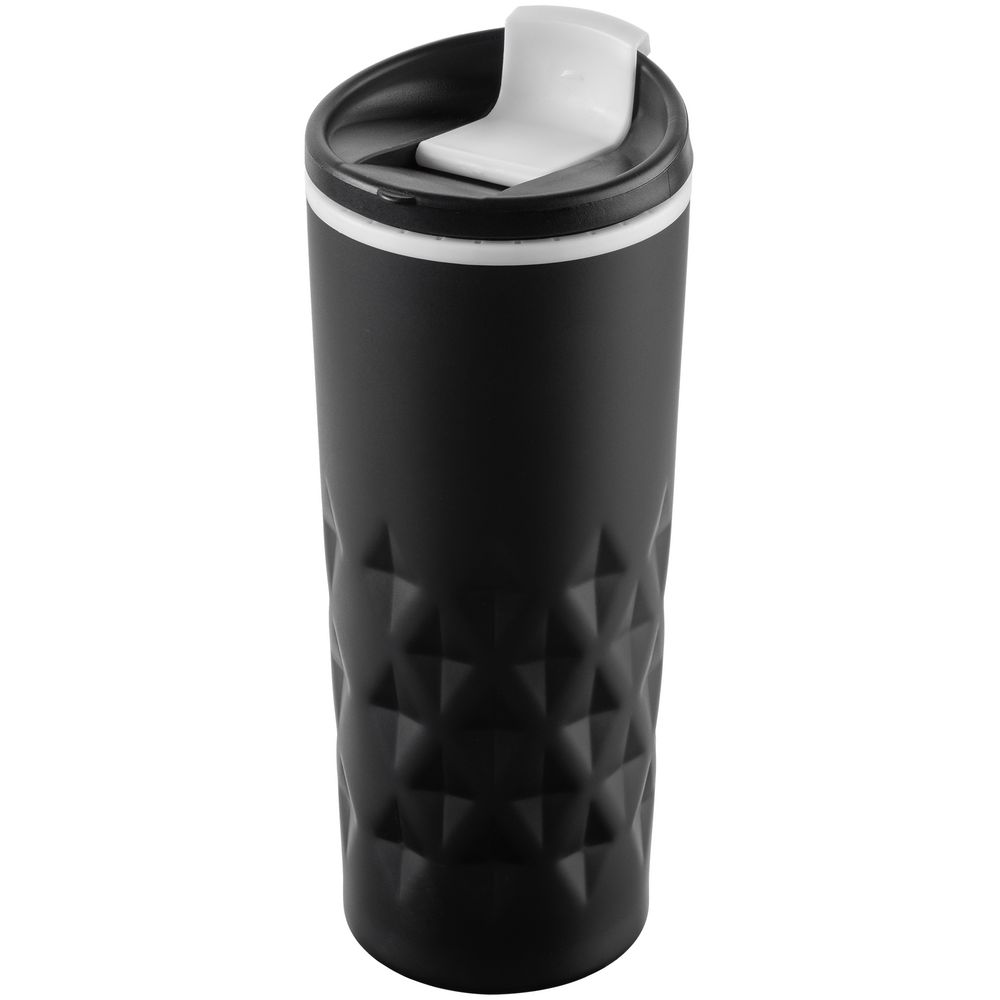 Двухслойная конструкция из пластика внутри и нержавеющей стали снаружи. Герметичная завинчивающаяся крышка с откидным клапаном для питья.