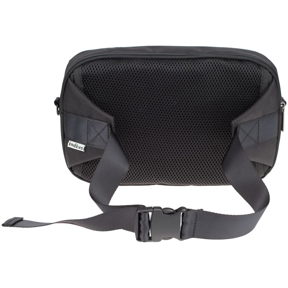 Чтобы комфортно носить сумку на плече, уберите поясной ремень под сетчатую спинку и пристегните съемный плечевой ремень.