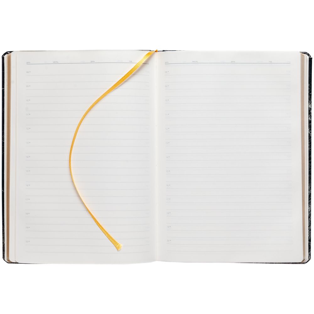 Ежедневник с твердой обложкой выполнен из мягкого материала Scala print, удивительно похожего на натуральную кожу. Дополнен ляссе желтого цвета.