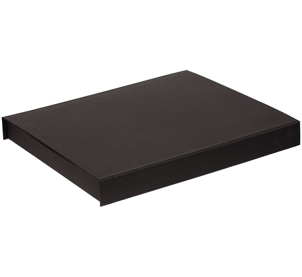 Коробка из переплетного картона, кашированного фактурной дизайнерской бумагой Efalin, с крышкой на магните и флокированным ложементом.