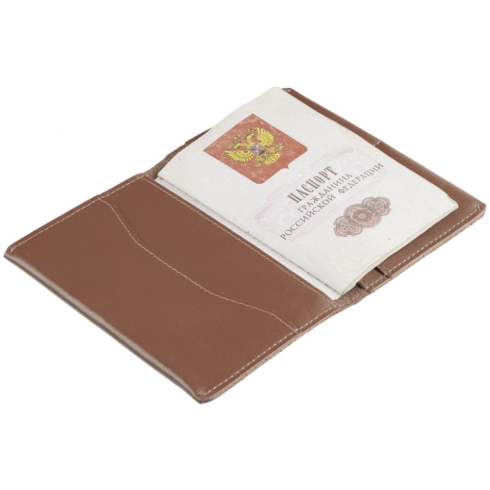 Обложка для паспорта с двумя отделениями для пластиковых карт и одним дополнительным карманом для других документов.