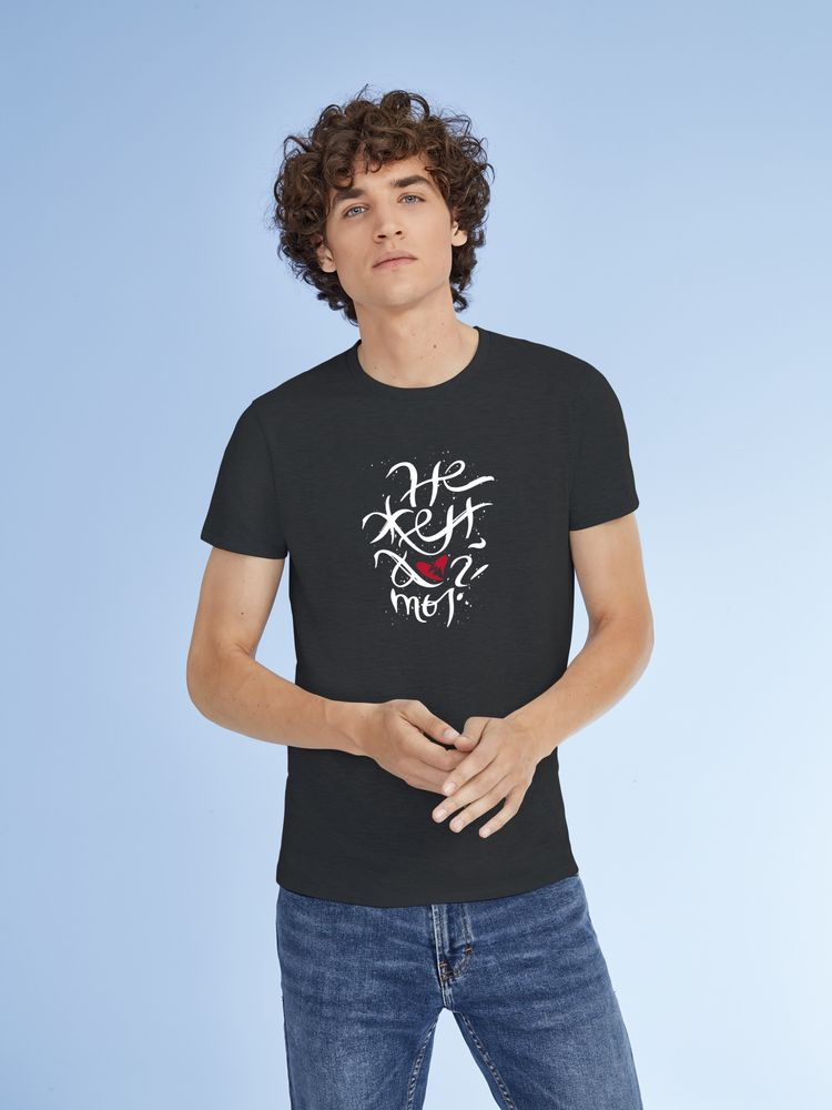Кроеная футболка (с боковыми швами). Приталенная облегающая модель, зауженный книзу рукав, укрепляющая тесьма по вороту, воротник связан резинкой с эластаном.