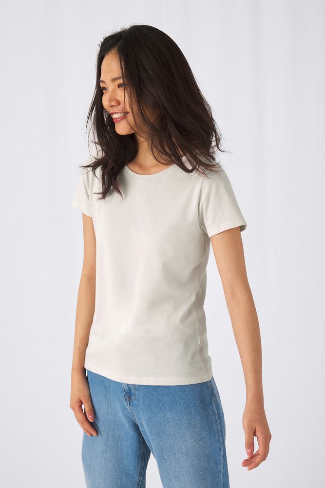 Кроеная футболка из органического гребенного хлопка. Круглый вырез отделан резинкой.