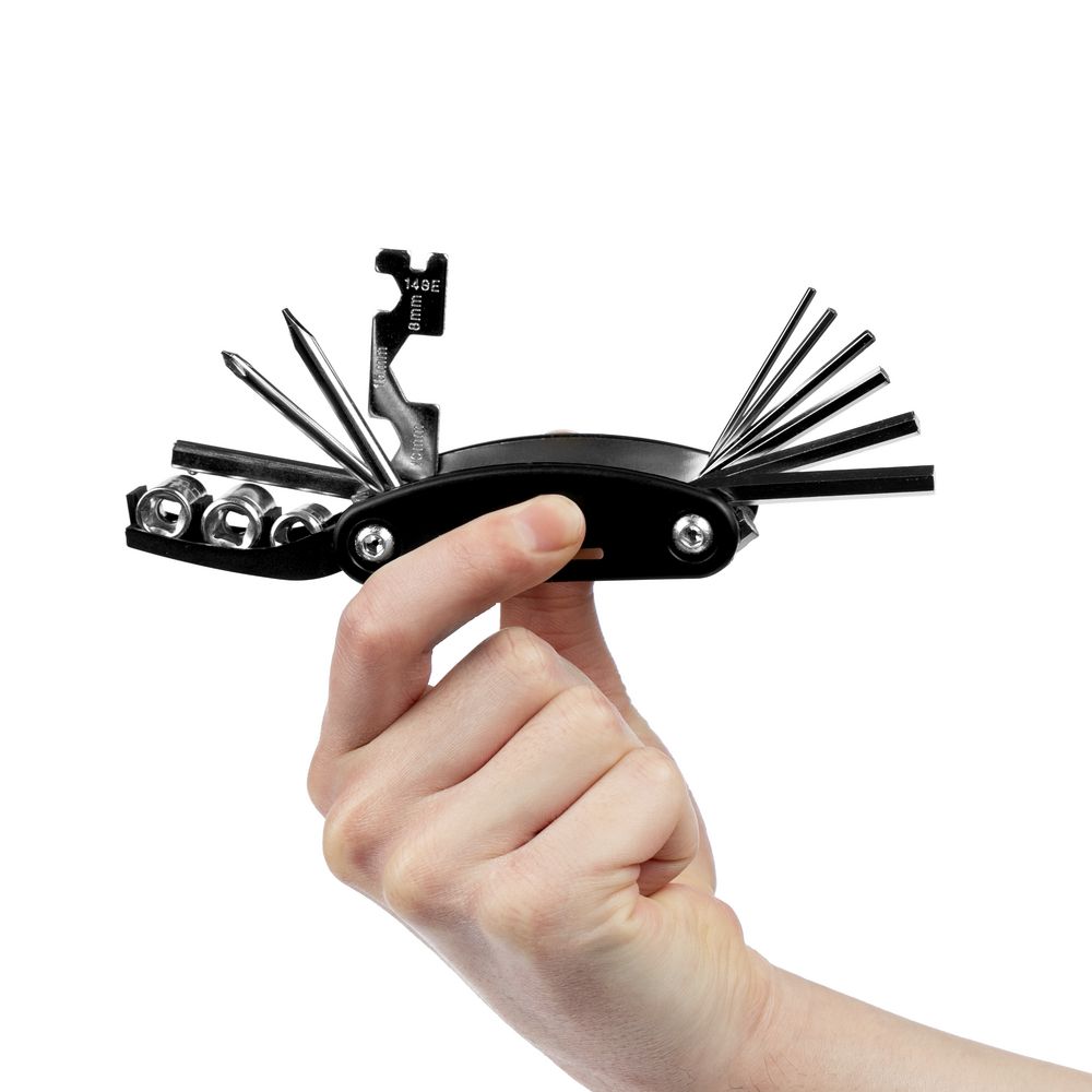 Универсальный компактный мультитул Velofix подходит для ремонта и сборки велосипеда. Благодаря складной конструкции мультитул не занимает много места, его удобно брать с собой в поездки.
