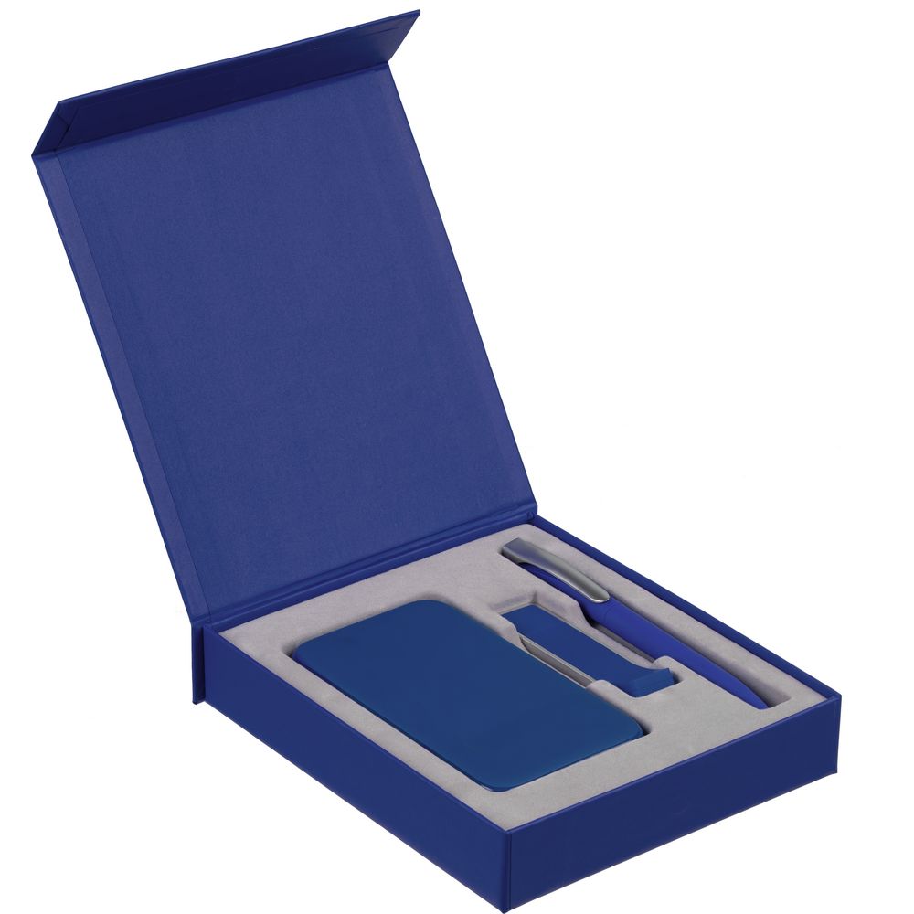 Подарочная коробка для аккумулятора 12,3х7,1х1 см, флешки 8,2х2,2х1,2 см и ручки 14,5х1,5х0,8 см с крышкой на магните и флокированным ложементом.