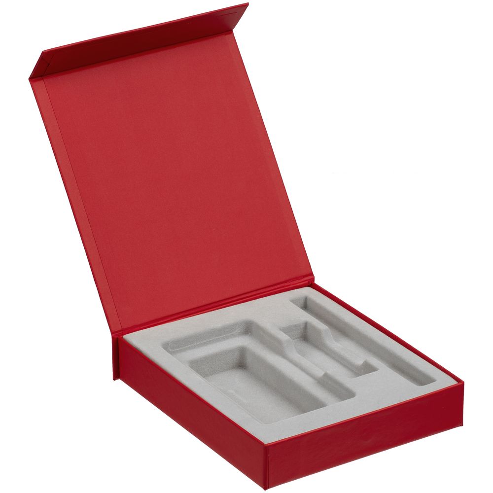 Подарочная коробка для аккумулятора 12,3х7,1х1 см, флешки 8,2х2,2х1,2 см и ручки 14,5х1,5х0,8 см с крышкой на магните и флокированным ложементом.