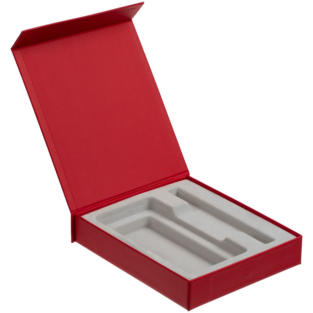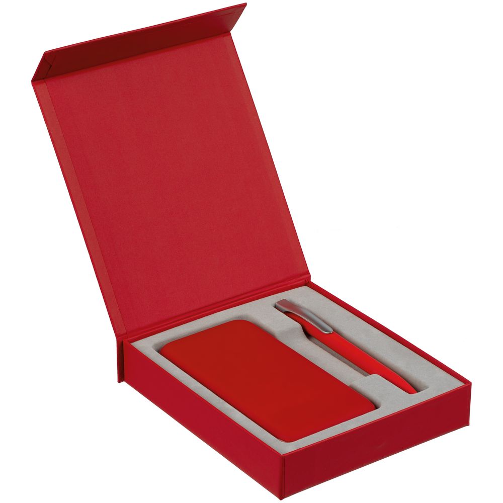 Подарочная коробка для аккумулятора 14,6х7,5х1,3 см и ручки 14,5х1,5х0,8 см с крышкой на магните и флокированным ложементом.