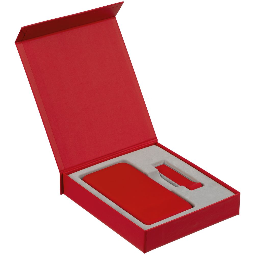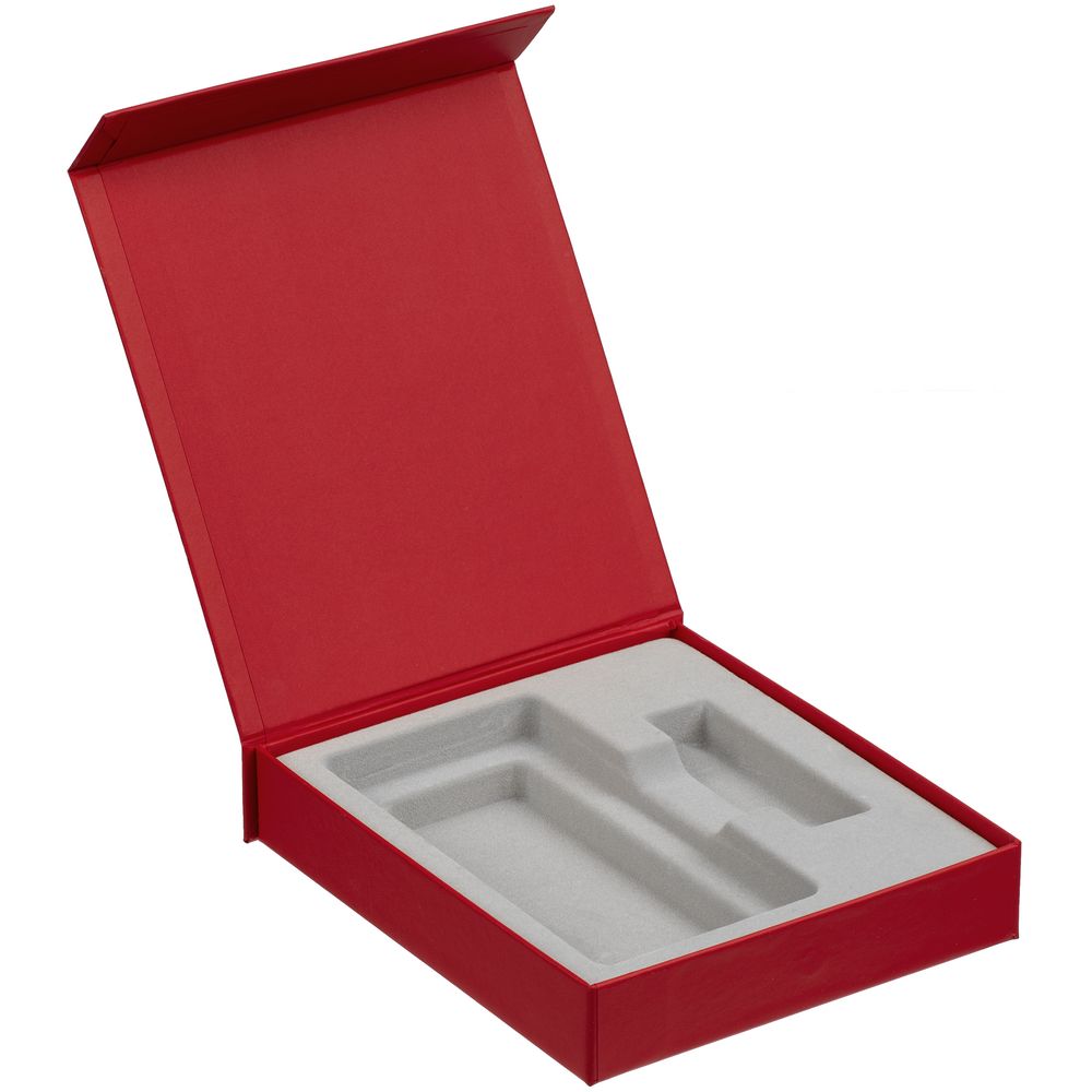 Подарочная коробка для аккумулятора 14,6х7,5х1,3 см и флешки 8,2х2,2х1,2 см с крышкой на магните и флокированным ложементом.
