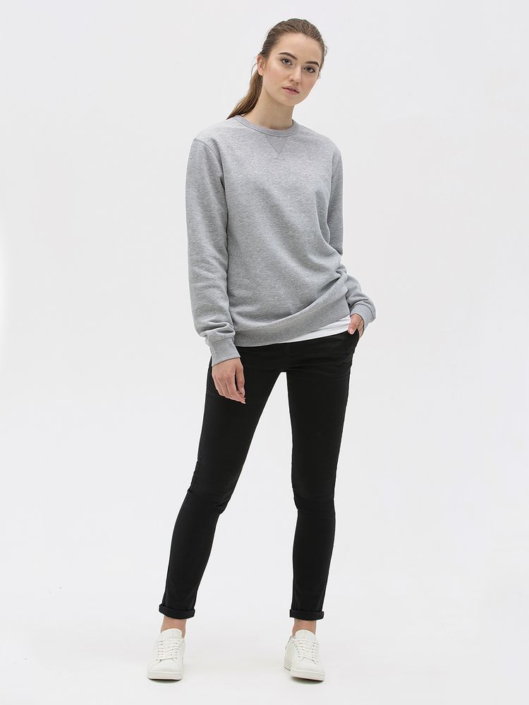 Утепленная толстовка унисекс с круглым вырезом и декоративной треугольной вставкой.