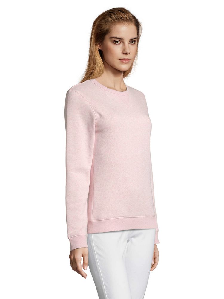 Женская утепленная толстовка с круглым вырезом и декоративной треугольной вставкой. Лейбл производителя в боковом шве изнутри, в шве горловины — только бирка с размером, что позволяет вам нанести свой логотип.