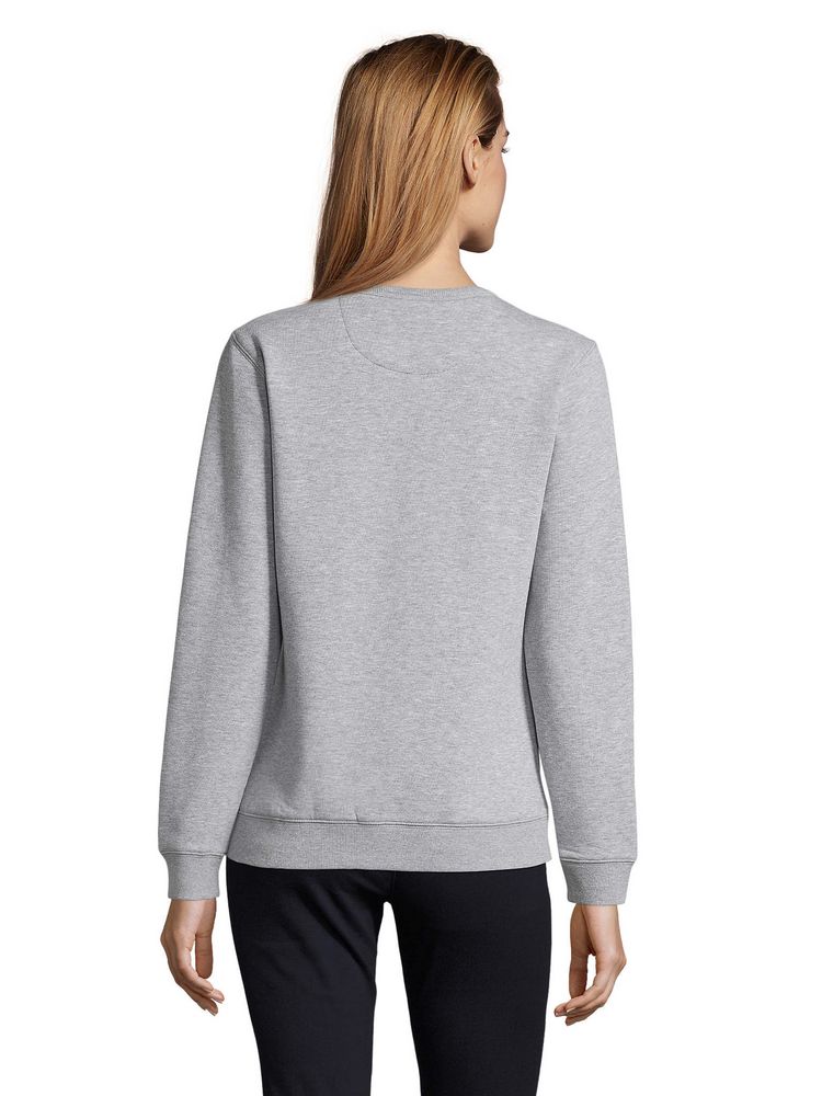 Женская утепленная толстовка с круглым вырезом и декоративной треугольной вставкой. Лейбл производителя в боковом шве изнутри, в шве горловины — только бирка с размером, что позволяет вам нанести свой логотип.