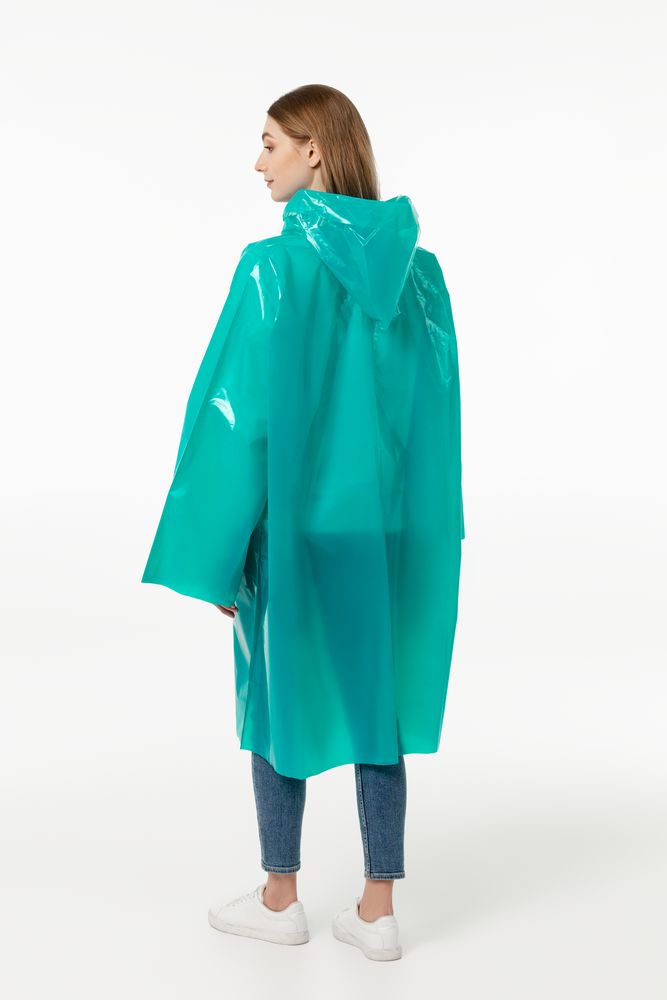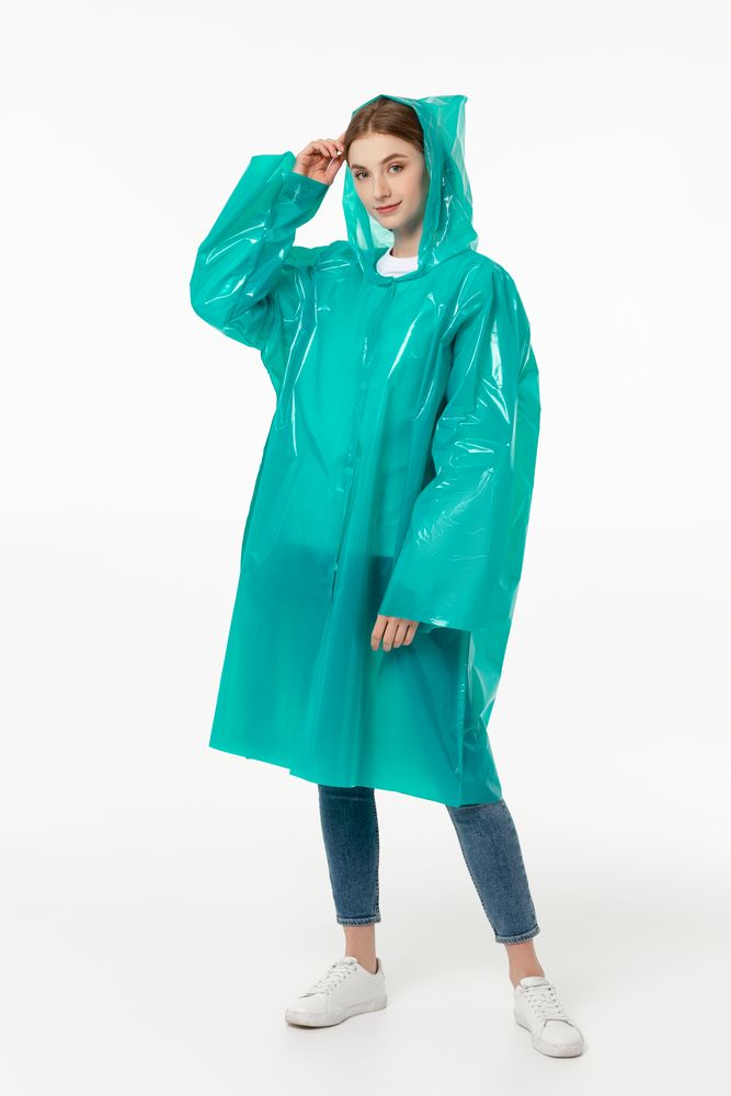 Дождевик-плащ с капюшоном и длинным рукавом из плотного полиэтилена высокого давления (ПВД).
