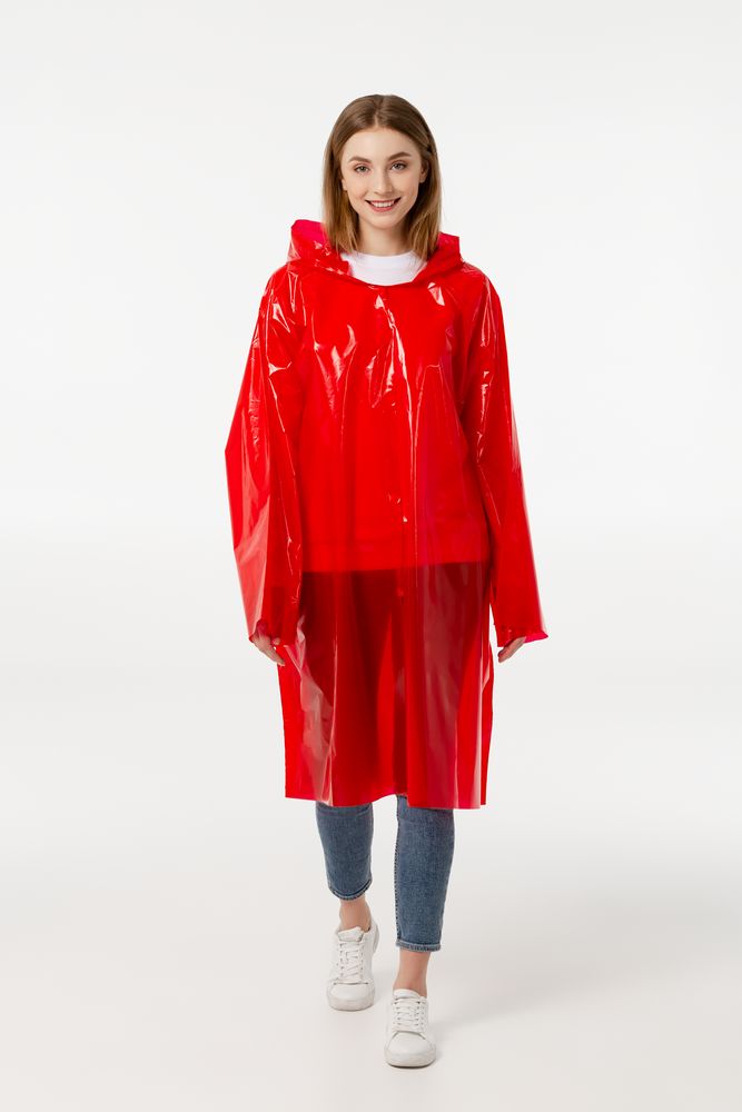 Дождевик-плащ с капюшоном и длинным рукавом из плотного полиэтилена высокого давления (ПВД).