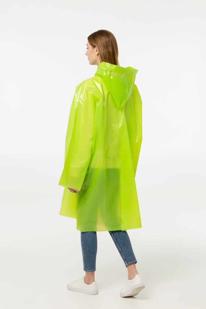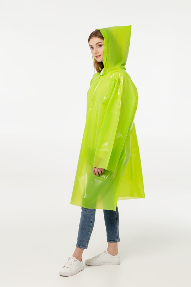 Дождевик-плащ с капюшоном и длинным рукавом из плотного полиэтилена высокого давления (ПВД).
