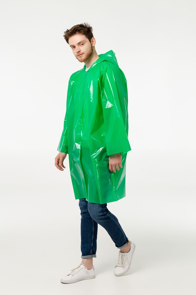 Дождевик-плащ с капюшоном и длинным рукавом из плотного полиэтилена высокого давления (ПВД).
