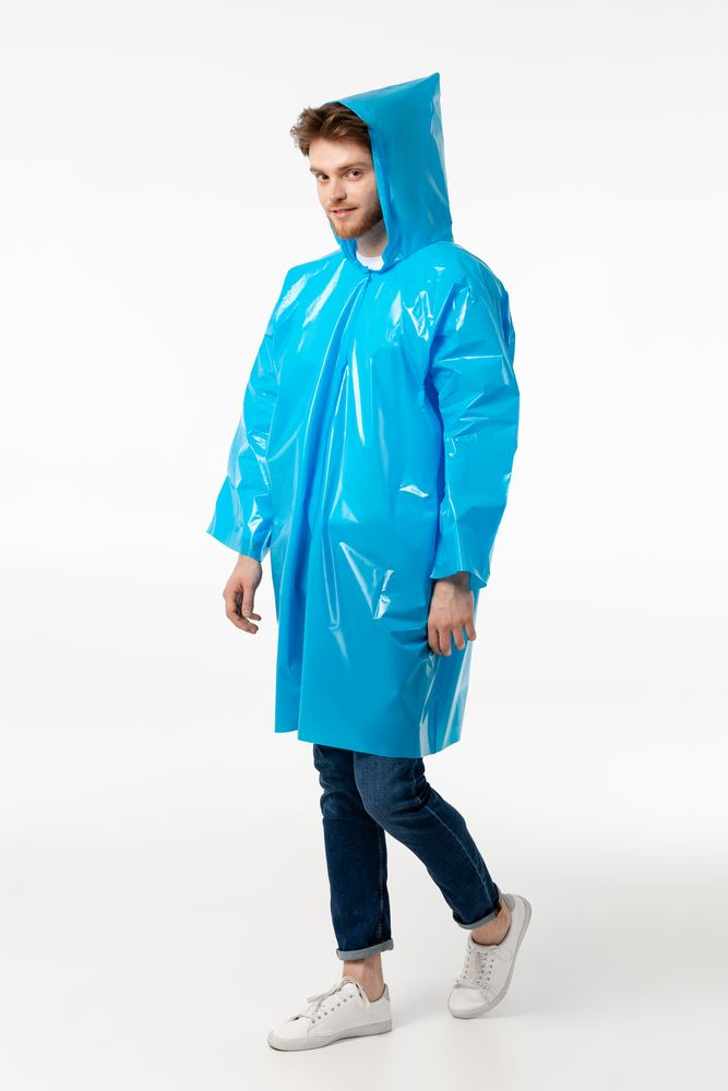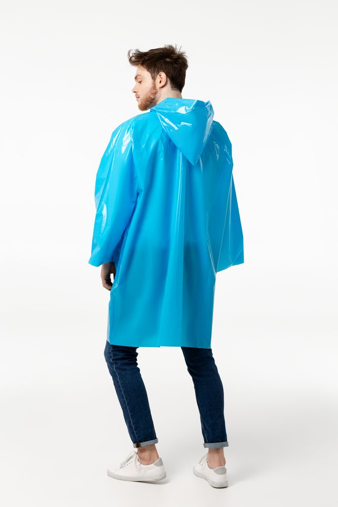 Дождевик-плащ с капюшоном и длинным рукавом из плотного полиэтилена высокого давления (ПВД).