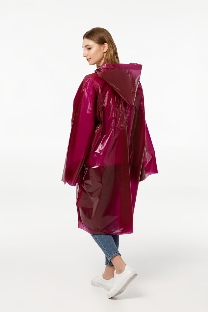 Дождевик-плащ с капюшоном и длинным рукавом из плотного полиэтилена высокого давления (ПВД).