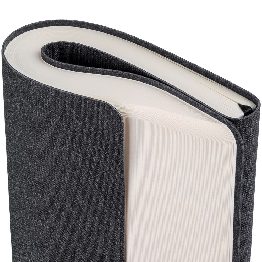 Гибкая обложка из материала Filigrana Melange, черный АА. Материал имитирует меланжевую ткань. Резинка с захватом черного цвета.
