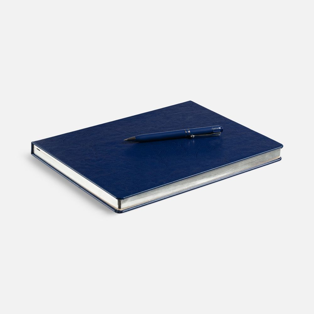 Статусный ежедневник с твердой обложкой и металлизированным обрезом, выполнен из материала Nebraska, синий НН.