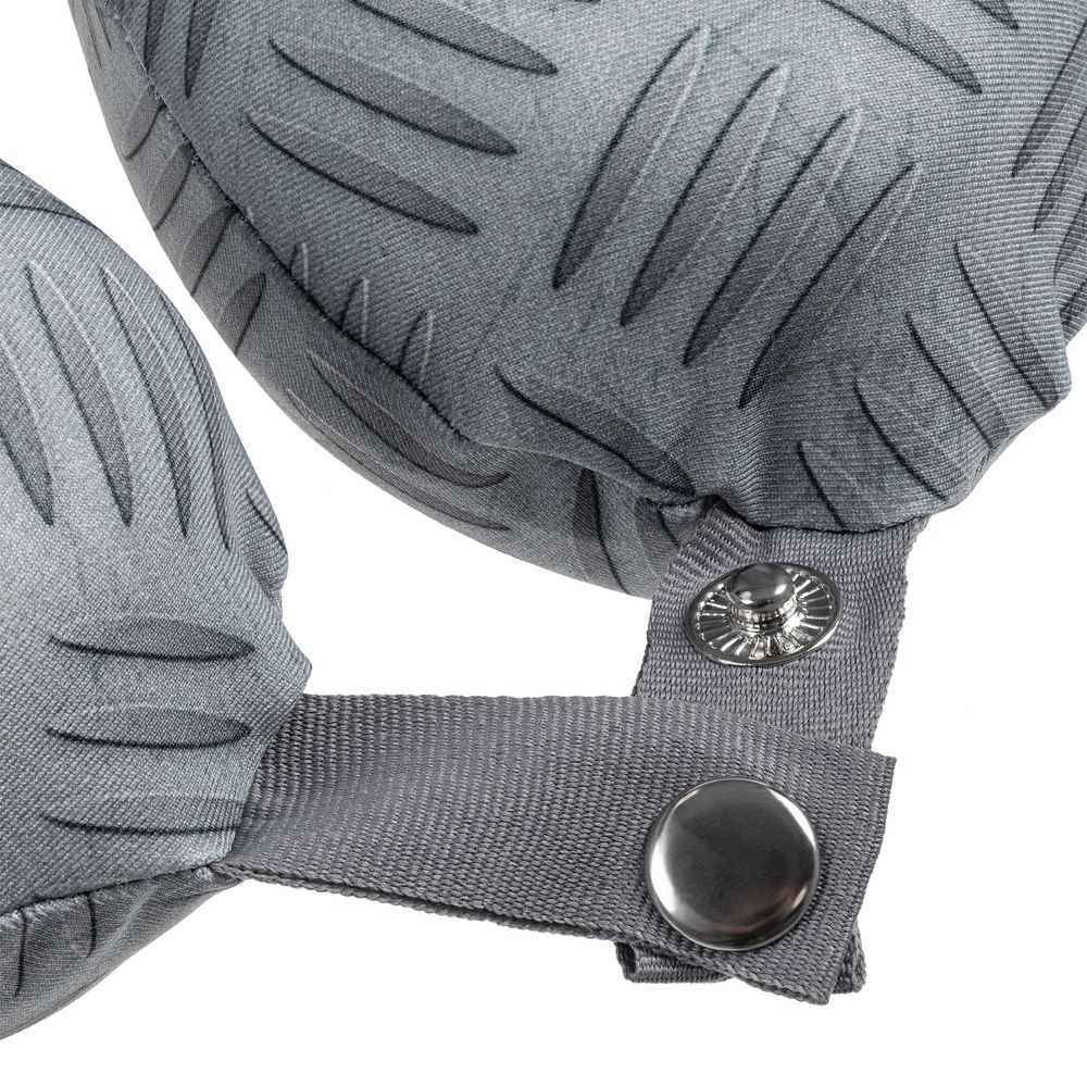 Подушка из вспененного полиуретана принимает форму тела. Съемный чехол из спандекса легко постирать. Благодаря кнопке подушку можно закрепить на рюкзаке или чемодане, когда она не нужна в дороге.Подушка упакована в индивидуальный пакет.